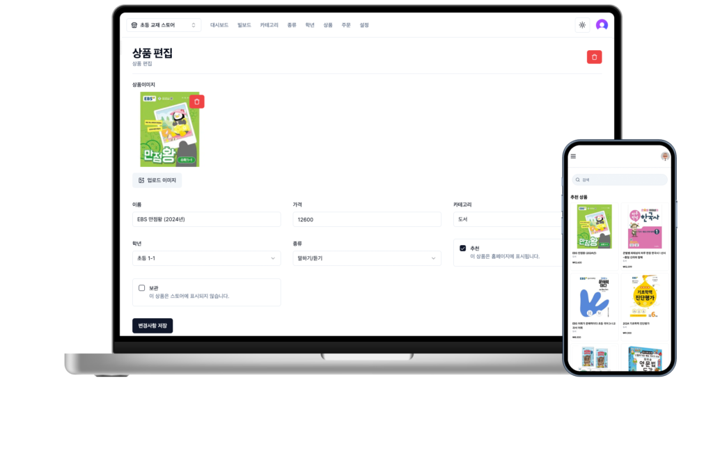 교재 판매 스토어는 고객사의 서버에 설치할 수 있는 설치형 솔루션입니다.